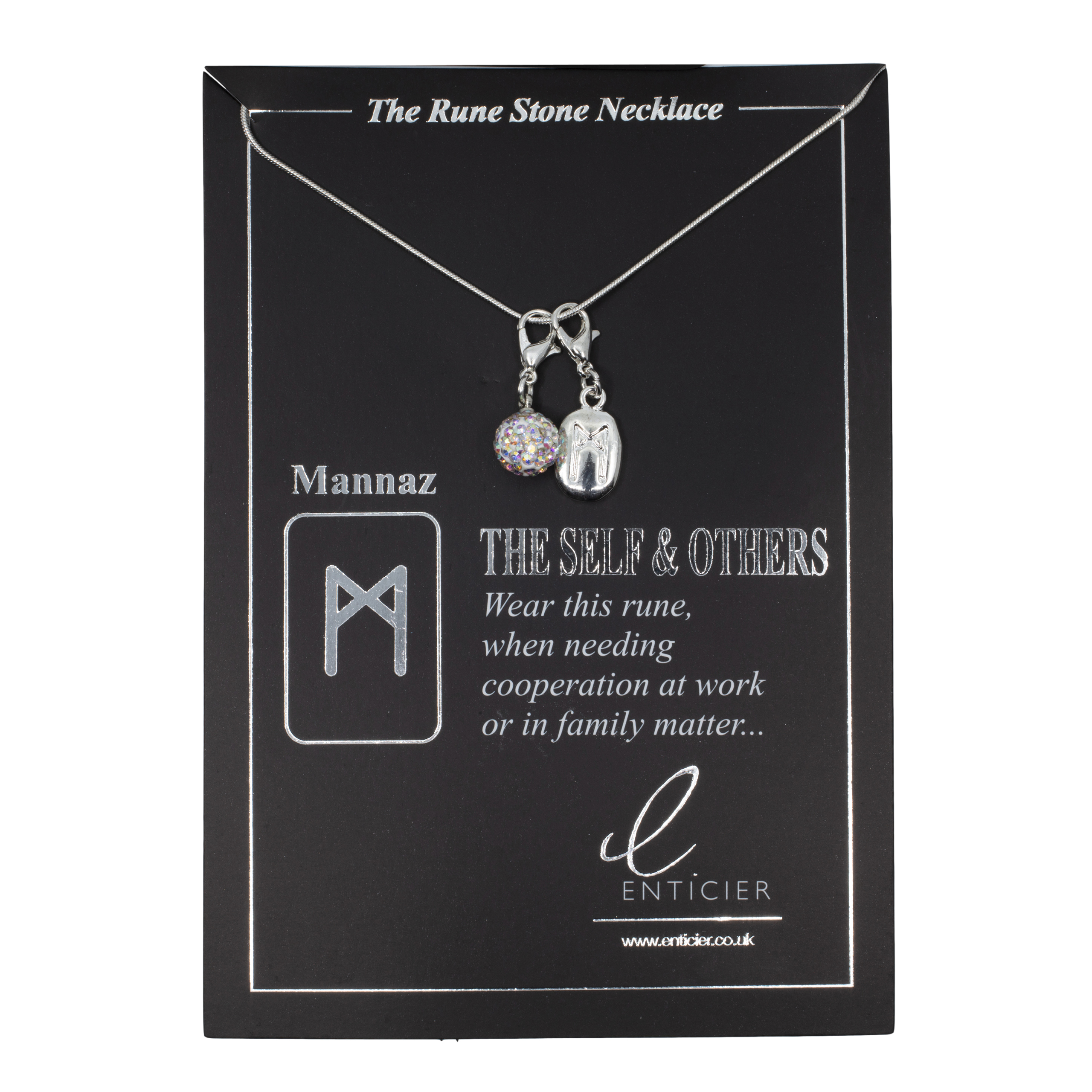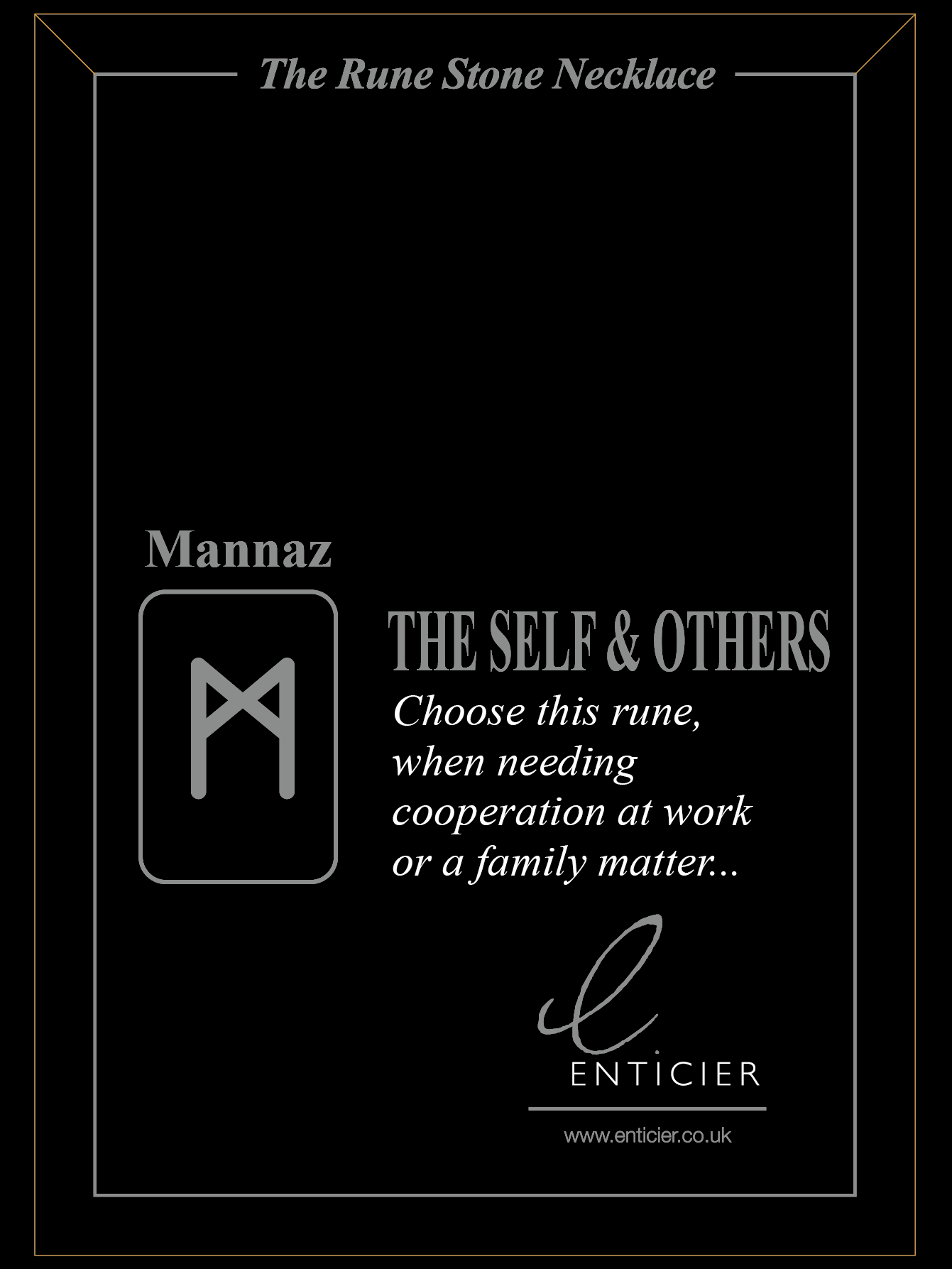 Arrives on beautiful Black & Gold card with a scroll to show other runes and meanings, with gold tie.